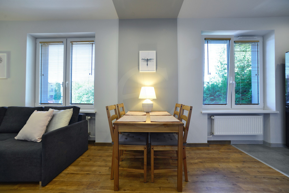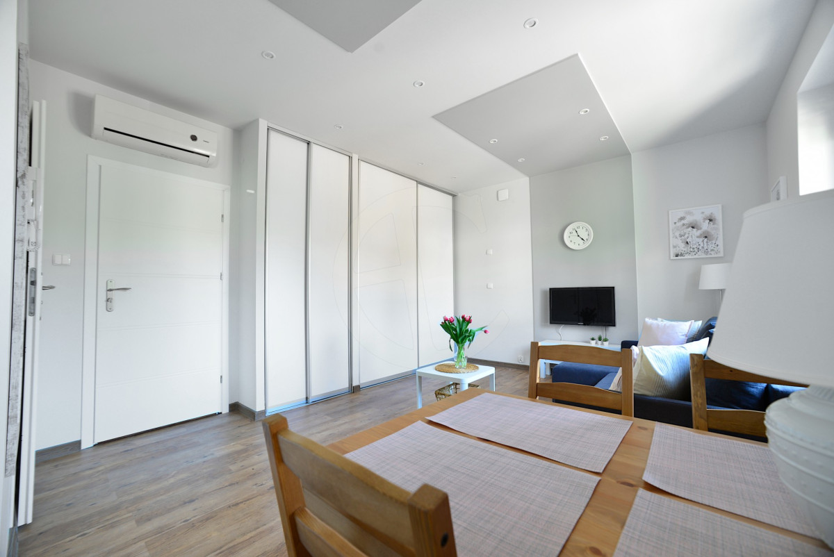 Zadbane, jasne mieszkanie typu studio o powierzchni 29 m2, zlokalizowane na wysokim parterze w domu jednorodzinnym.